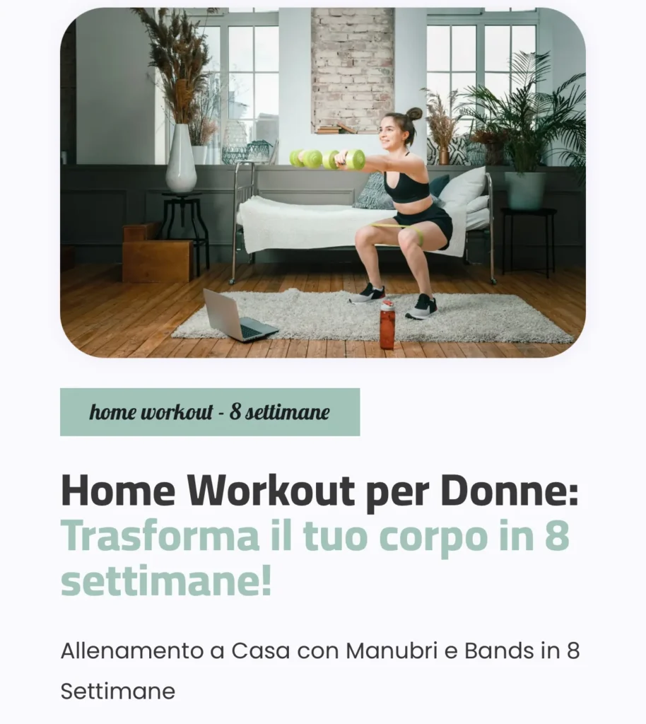 - Home Workout con Manubri e Bands (8 settimane): Un programma destinato a trasformare il corpo in 8 settimane, utilizzando manubri e bande elastiche per un allenamento completo a casa. Scopri il programma.