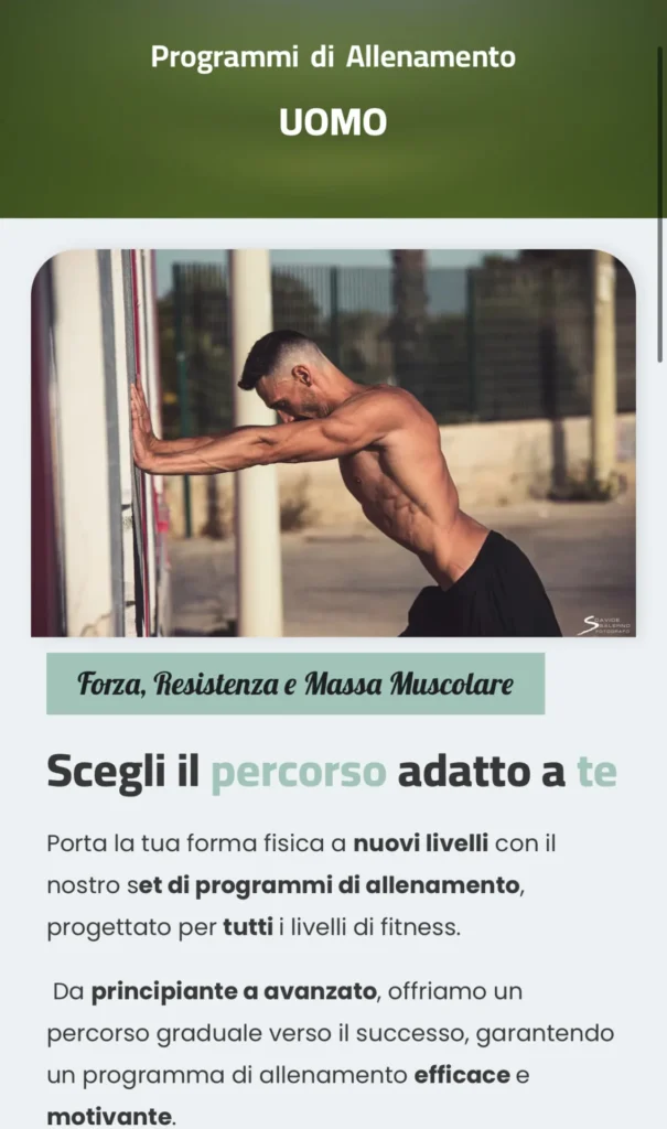 - Programmi in Palestra (da 4 a 12 settimane): Adatti a tutti i livelli, questi programmi integrati aiutano a sviluppare forza, resistenza e massa muscolare attraverso esercizi mirati in palestra. Scopri i dettagli.
